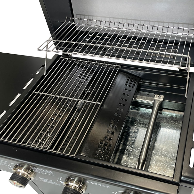 屋外専用 本体素材:ステンレス製+スチール製 バーナー:ステンレス製3連バーナー 焼き網:ステンレス製2枚 |